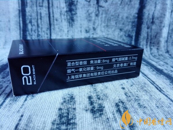 中南海典8煙盒正反兩面的上端,直接標(biāo)有BLACK EIGHT字樣,就是黑8的名稱。縱觀煙盒的整體構(gòu)造與設(shè)計(jì),顯得極為簡潔明了。煙盒的色澤,只有黑紅白三種。大黑色調(diào)打底,紅色加以修飾,帶來的視覺感,非常明快。黑8的煙盒材質(zhì)摸起來,實(shí)在太光滑了。如果在光線充足的環(huán)境下平視,會很清晰地看到手指撫摸過的痕跡。形似指紋狀的波浪線紋。紅色的阿拉伯?dāng)?shù)字8印制于煙盒之上,異常地顯眼。