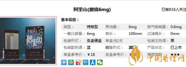 這款黑魔鏡香煙叫做阿里山阿里山(魔鏡6mg),是一款長度100mm的超細(xì)支卷煙,這款帶有鏡子的香煙是深受女性消費(fèi)者的喜愛,女為悅己者容,對(duì)女性煙民朋友們而言,具有鏡子功能的煙盒怎能不愛呢,那么在介紹阿里山黑魔鏡價(jià)格圖片之前,先來看看阿里山黑魔鏡多少錢,這款香煙的售價(jià)為18元/包。