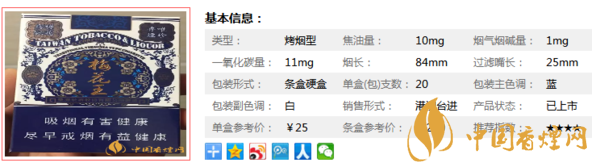 梅花王藍(lán)硬香煙價格及圖片 一款非常難得的臺灣烤煙