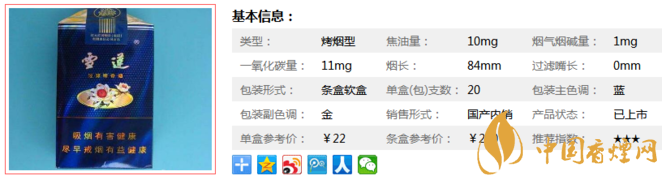三、雪蓮軟藍(lán)香煙參數(shù)