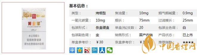 | 類型 :烤煙型 | 焦油量 :10mg | 煙氣煙堿量 :0.9mg | 一氧化碳量 :10mg |