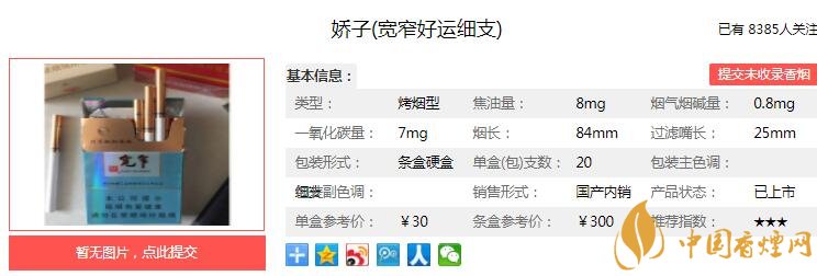 一、嬌子寬窄好運細(xì)支香煙價格