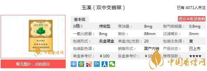 以上便是由香煙網小編為大家介紹的關于玉溪翡翠香煙價格 玉溪翡翠多少錢一包的相關信息,想要了解更多有關內容請點擊:泰山望岳價格 山東中煙低焦產品的經典之作