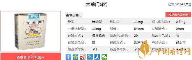 以上便是香煙網(wǎng)小編為大家介紹的關(guān)于跨越百年的民國煙品,軟大前門香煙如今還是原來的價格的相關(guān)信息,看完之后大家是不是對于大前門(軟)的相關(guān)信息更加了解呢。大家還想查詢更多的相關(guān)內(nèi)容歡迎點擊:短支大前門多少錢一包 大前門短支香煙價格表