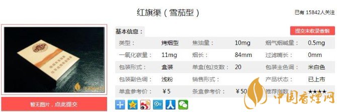 很多打開香煙煙盒,不仔細(xì)看還不知道,其實(shí)這是一款雪茄香煙。只不過大小和長度,全部是和普通香煙一樣的外觀。除了煙支可吸食部分是黃色,其他的地方根本看不出來這是雪茄。降焦線的設(shè)計(jì),這款香煙可以說是完美了。下面便是紅旗渠(雪茄型)的基本參數(shù):焦油量:10mg 煙堿量:0.9mg 一氧化碳量:11mg.