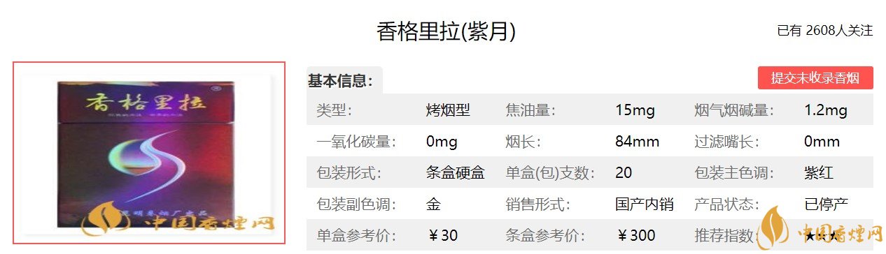香格里拉香煙價格表圖