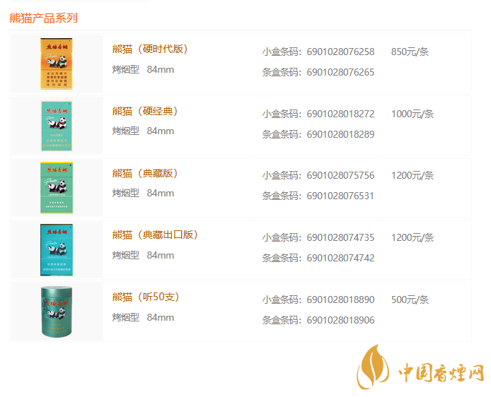 熊貓香煙圖片價格一覽