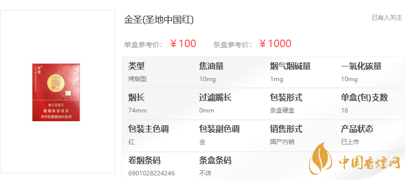 金圣圣地中國(guó)紅多少錢(qián)一包 金圣圣地中國(guó)紅16支裝多少錢(qián)一包