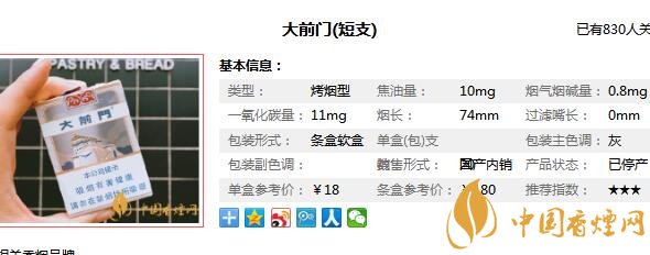 大前門香煙參數(shù)信息