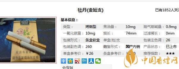 金牡丹香煙參數(shù)信息