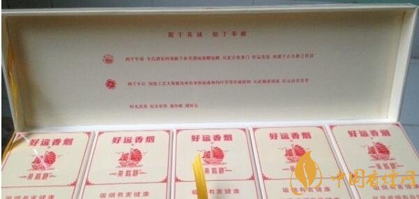 在黃鶴樓香煙大全及價格中,好運(yùn)有別于樓樓其他品系,凸顯簡單、樸實,沒有以前黃鶴樓香煙的那種花里胡哨的感覺。除了黃鶴樓和好運(yùn)的品牌標(biāo)識之外,正反面都印有紅色帆船,和“一帆風(fēng)順”的字樣。