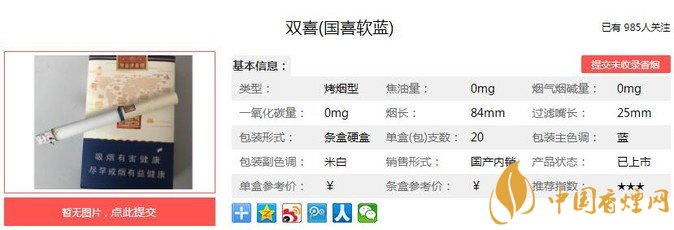 一、雙喜國喜軟藍香煙價格