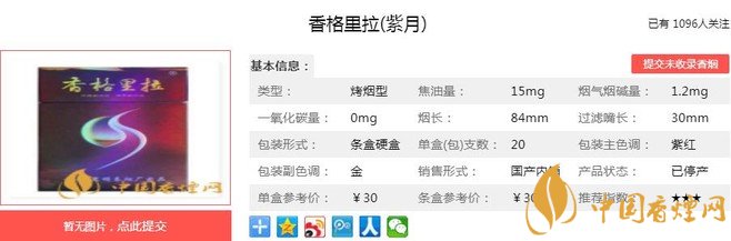 一、香格里拉紫月香煙價格