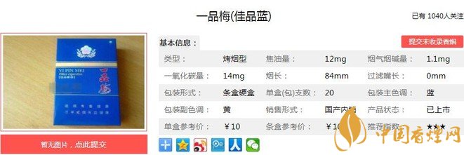 一、一品梅佳品藍香煙價格