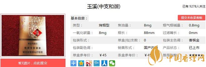 一、玉溪中支和諧香煙價格