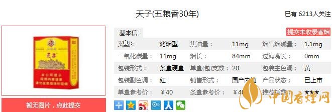 三、天子五糧香30年香煙參數(shù)