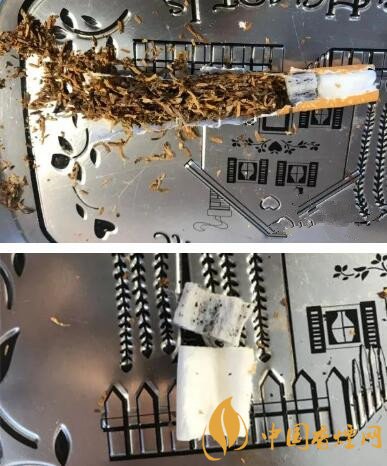 出于好奇,把其中的一根進(jìn)行了分尸。可以看到有兩段過濾嘴,一段加了活性炭,一段就是普通的過濾嘴。