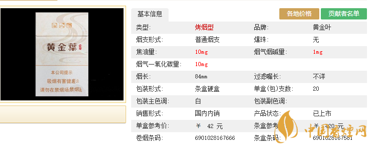 卷煙條碼:6901028167666;條盒條碼:6901028167581