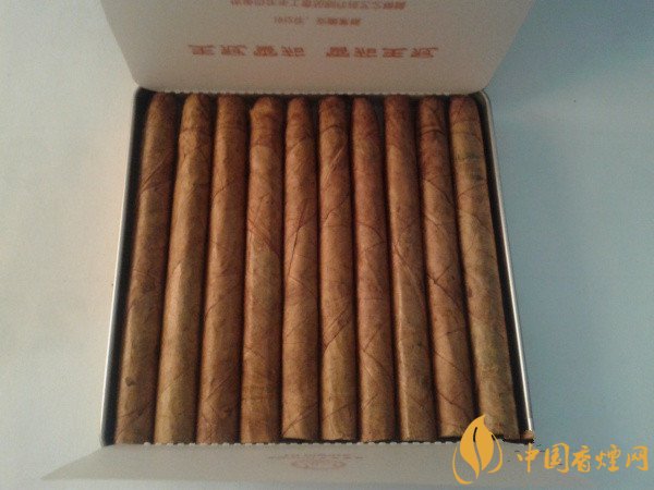 煙長(zhǎng):80mm 過濾嘴長(zhǎng):25mm 包裝形式:鐵盒裝 單盒(包)支數(shù):10