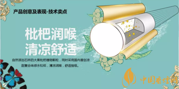 產(chǎn)品特點(diǎn):選用可直接飲用的國(guó)家1類水質(zhì)—撫仙湖水滋養(yǎng)的玉溪莊園小產(chǎn)區(qū)煙葉,片片純凈,清香純正。自然添加阿詩(shī)瑪故鄉(xiāng)石林的大果枇杷植物顆粒,同時(shí)采用國(guó)內(nèi)首創(chuàng)涼甜復(fù)合味感水松紙,清涼潤(rùn)喉,舒適抽吸。自然萃取天然,清甜回甘,愉悅享受,豐富抽吸滿足感。
