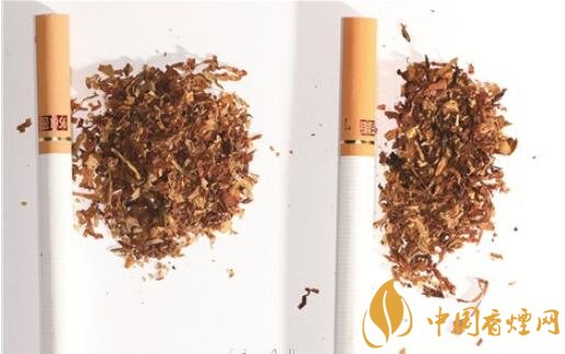 真煙煙絲切絲寬度與長度適中均勻,顔色呈橘黃色,光澤油潤性好,柔軟疏松,煙絲中含碎末少,煙絲結構為葉絲、膨脹梗絲和造紙法再造煙葉;假煙制絲工藝粗糙,一般使用未經處理的劣質煙絲,色澤發(fā)暗無光澤,呈暗褐色,煙絲中含碎末較多,煙絲結構一般為葉絲和沒有經過膨脹處理的梗絲,無造紙法再造煙葉,煙絲結構與真品特征存在明顯差異。
