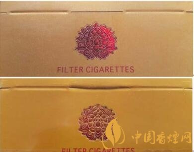 真品卷煙花團(tuán)圖案清晰、立體感強(qiáng),燙金線明亮。該款假冒卷煙圖案模糊,無(wú)立體感。