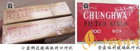 如何從外觀識別二次粘封的假冒卷煙,筆者現(xiàn)將近期市場上查獲的二次粘封的假冒卷煙與真品卷煙的部分外觀特征進(jìn)行差異化對比。(注:以下鑒定點非全部)