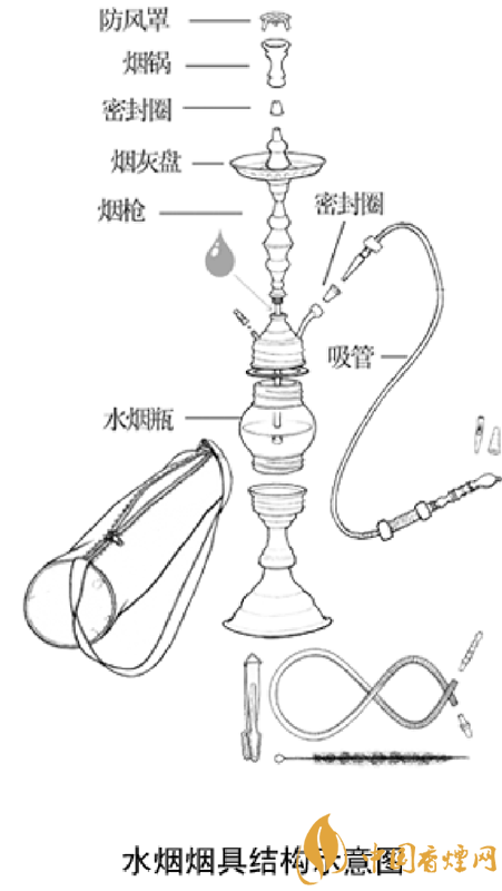 水煙部件可分為陶瓷鍋 ,碳盆,頂部橡膠密封圈,水煙主體桿子,空氣閥門,瓶子鏈接橡膠圈,水煙瓶子,水煙管,那么我們?cè)趯?duì)水煙壺怎么做了解之前,我們先來了解一下水煙壺怎么安裝。