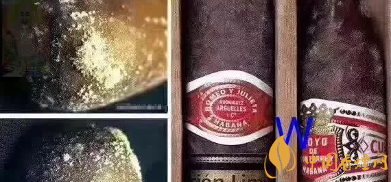 3、雪茄發(fā)霉了:這個大伙務(wù)必看清楚的,茄煙灰白點是什么?是綠色的毛毛。保存雪茄如果出現(xiàn)霉點,那就說明這個雪茄柜濕度太大了。其實你也不用慌張,先把發(fā)霉的雪茄拿出來,避免傳給其它的雪茄。